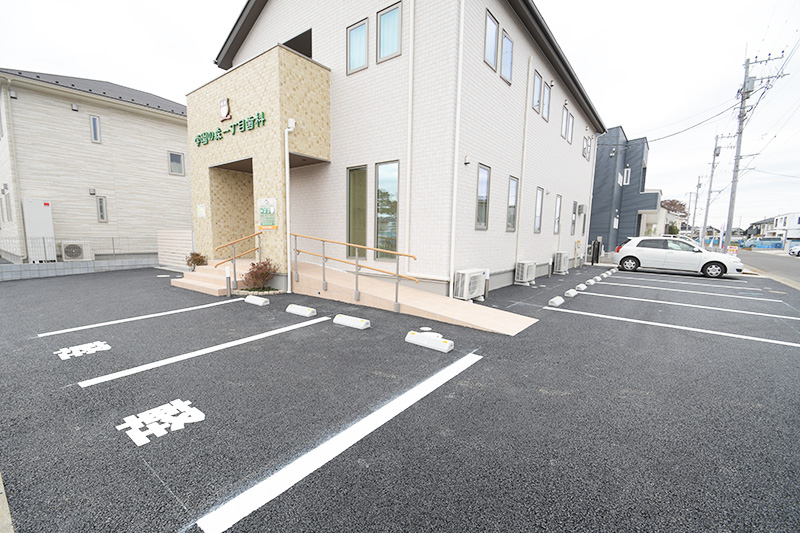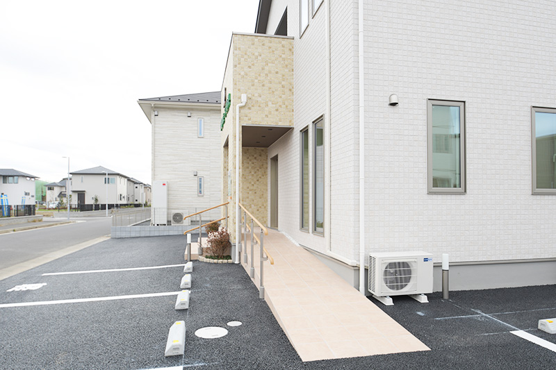 エントランスはバリアフリーになっていて、車椅子やベビーカーでの移動もできます。駐車場は8台完備しています。